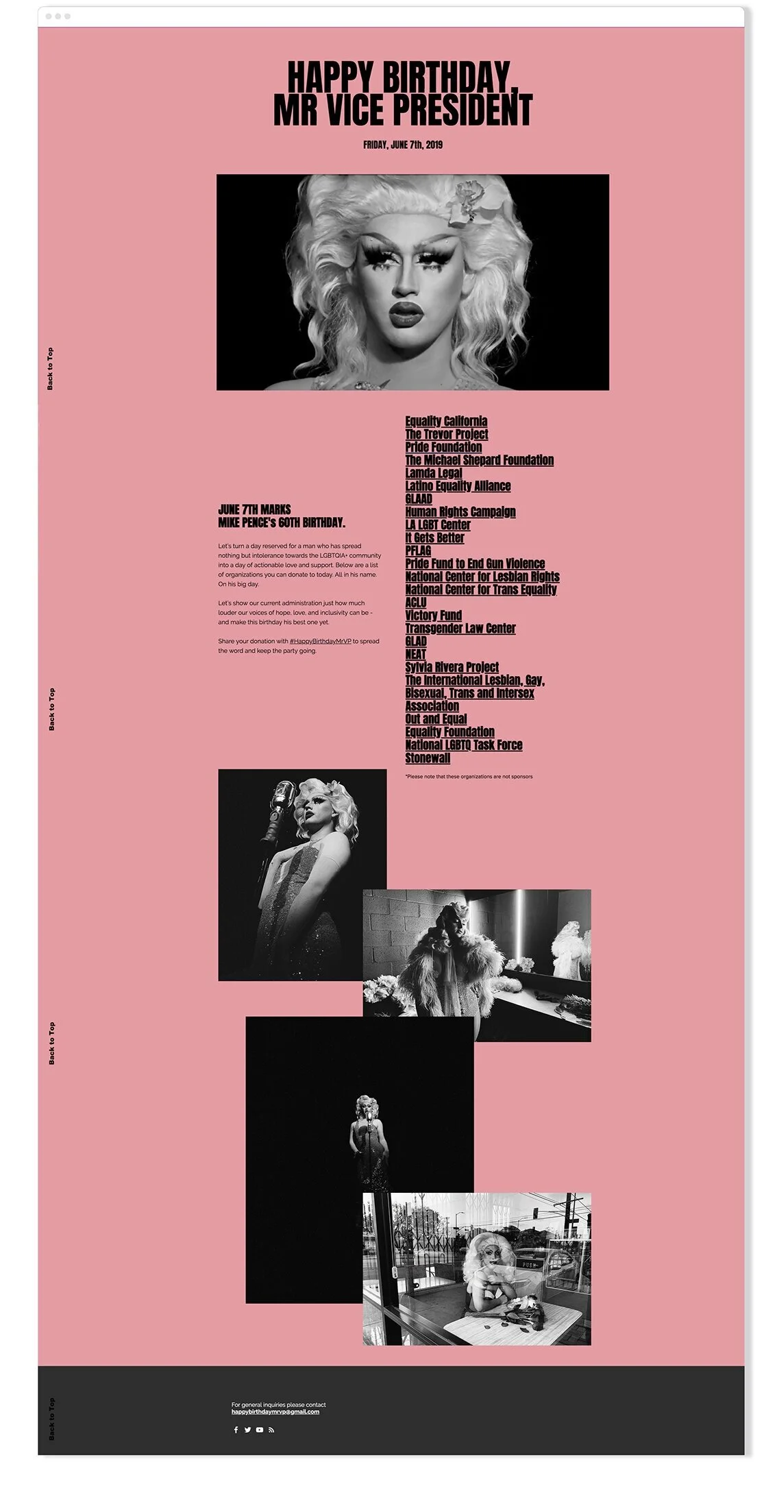 We then partnered with six LGBTQIA+ organizations to encourage people to donate to an organization that supports the community on his birthday.